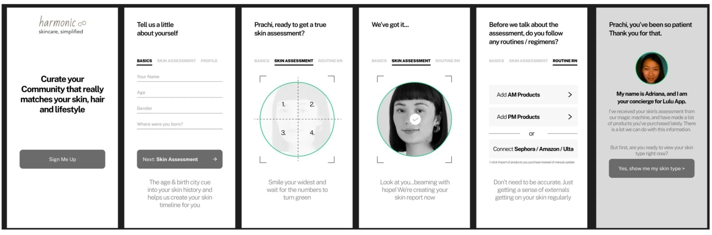 Harmonic Skincare is a personalized skincare app that uses AI to adapt routines based on a user's evolving skin health, lifestyle, and environment. It blends smart recommendations with peer-to-peer support, helping users make informed, trustworthy skincare decisions.